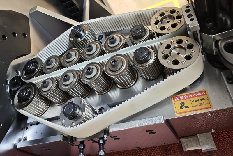1、送料機(jī)構(gòu)采用履帶式結(jié)構(gòu),能夠更好的與銅鋁排絕緣層表面貼合增加附著力推動送線確保送線精度,切換不同線徑生產(chǎn)無需更換送料輪,調(diào)節(jié)行程即可。