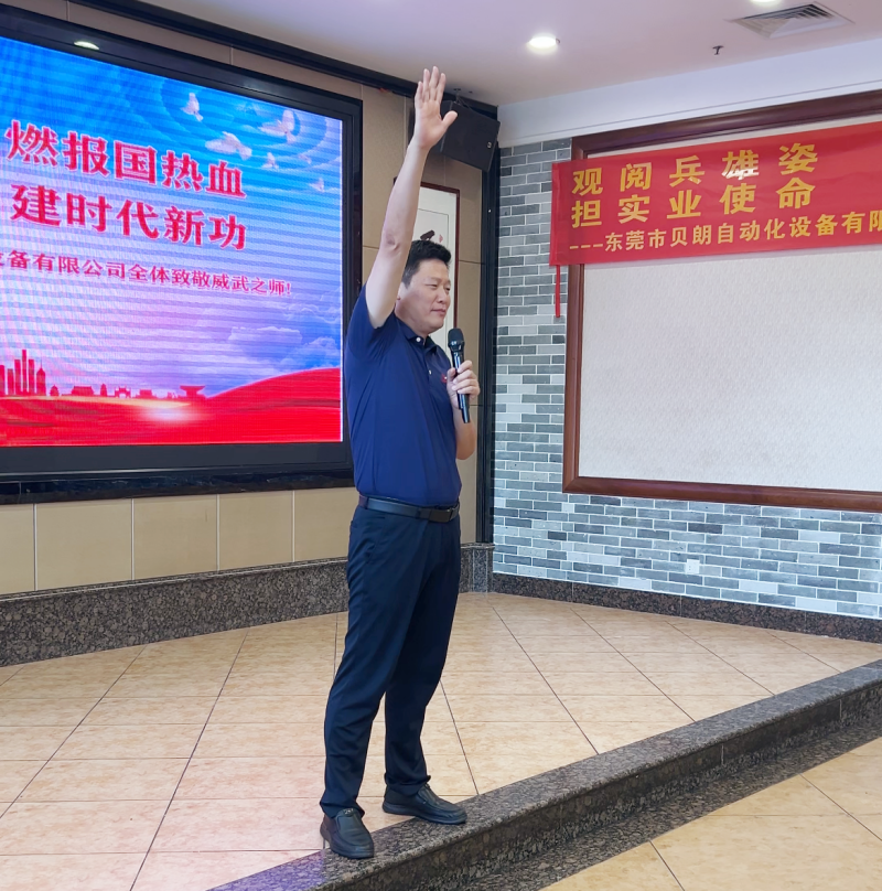 首先,東莞市貝朗自動化設備有限公司總經理王泉人為本次活動作了致詞。王總說:“實業報國”不是一句空話。它體現在我們畫好的每一張線材成型機的圖紙上,體現在我們裝配的每一個零件上,體現在我們調試的每一臺線材成型機設備上。我們崗位平凡,但責任重大。我們多一份專注,產品的質量就多一份保障;我們多一份創新,行業的瓶頸就多一份突破的可能。我們每個人的踏實奮斗,匯聚起來,就是推動國家制造業前行的堅實力量。