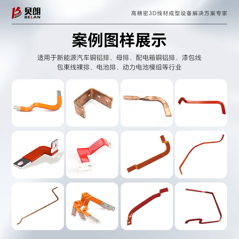 8.該設備是專門針對銅、鋁排自動折彎成型的一款設備,適用于生產:新能源汽車銅鋁排、母排、配電箱銅鋁排、